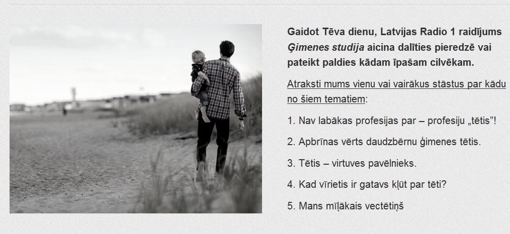 Gaidot Tēva dienu, Latvijas Radio 1 raidījums Ģimenes studija aicina dalīties pieredzē vai pateikt paldies kādam īpašam cilvēkam.